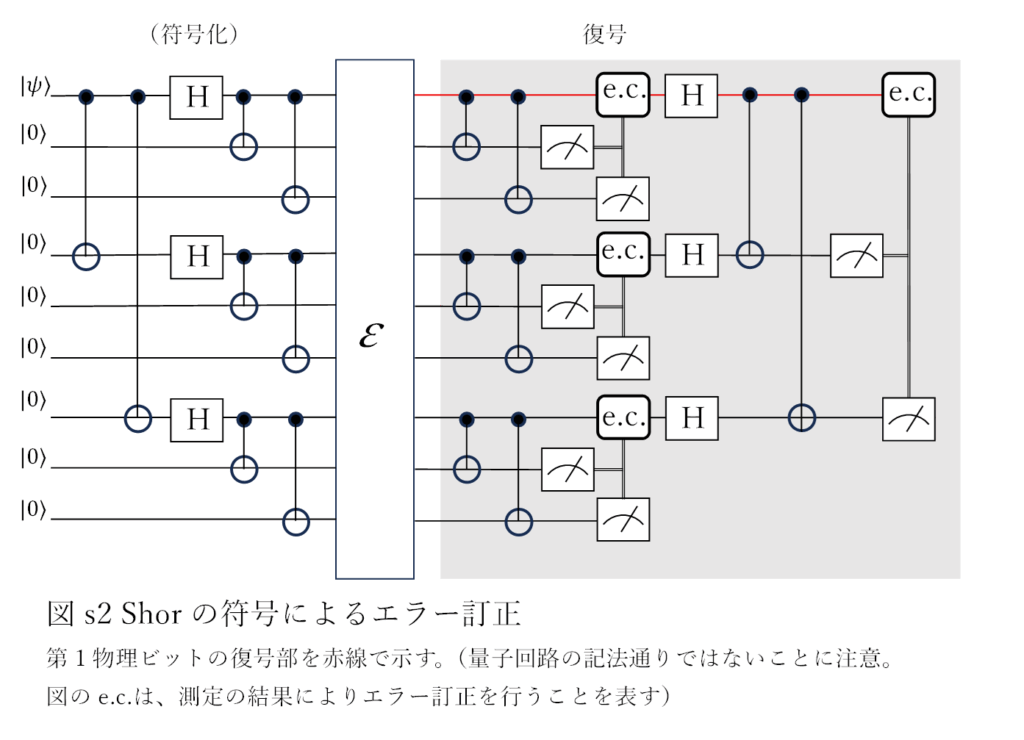 *たとえば、[1]の10.2。「Shorの符号は単一qビットに対するビット反転と位相反転以上の誤りから守ることができる」「単一qビットに働く限り任意の誤りから完全に護る」